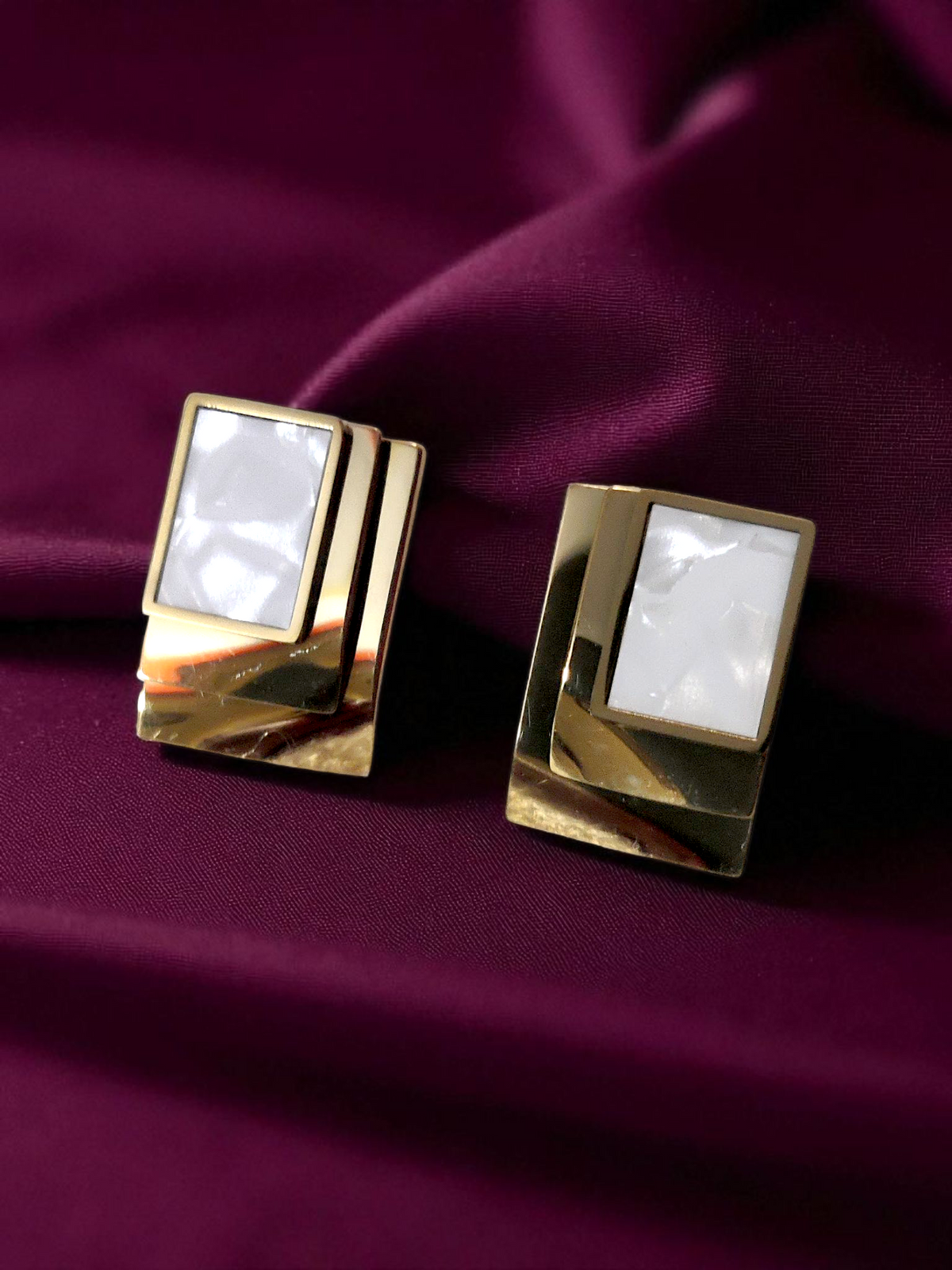 The Ashi Ivory Shine Anti-Tarnish Earrings have a modern and classy design with a white enamel center and gold finish. These earrings are perfect for office, parties, or daily use.