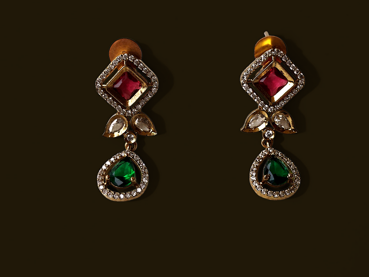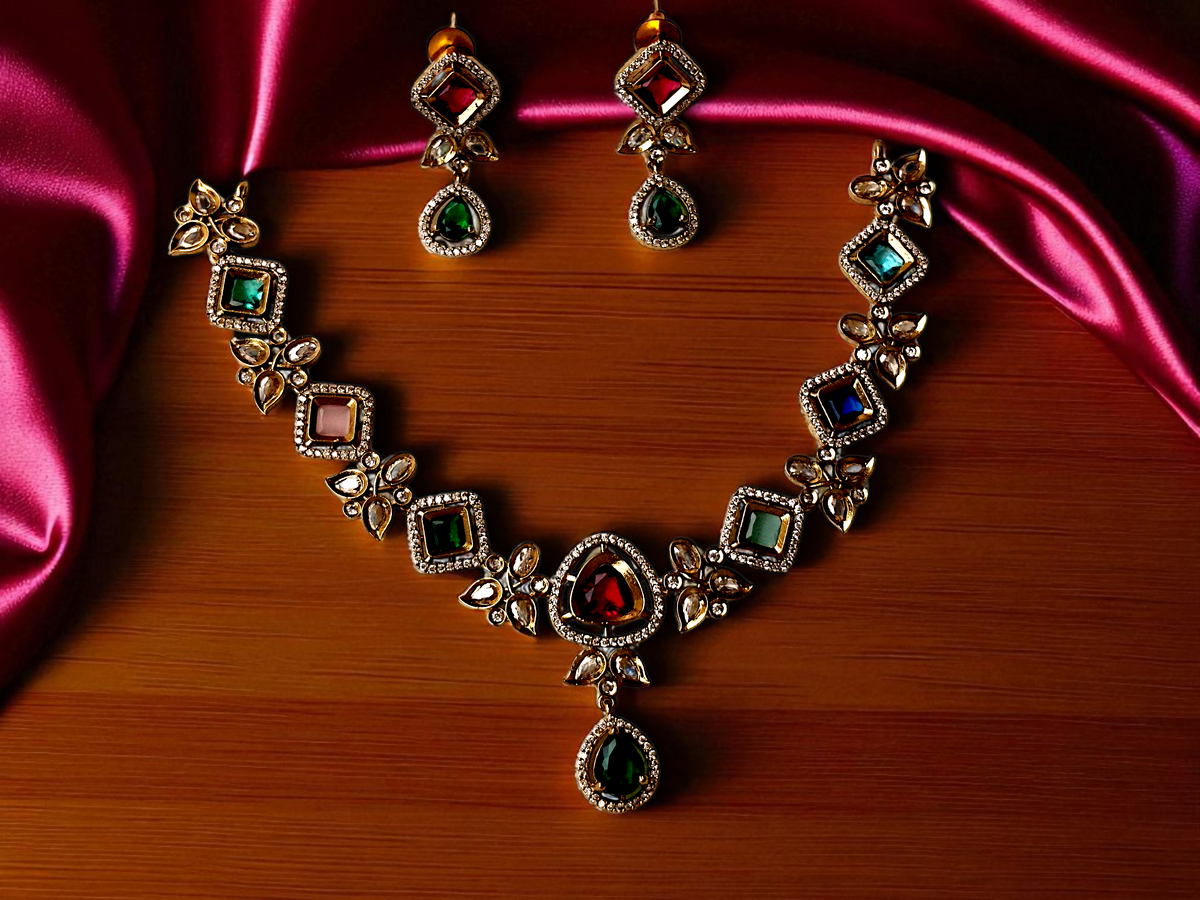 • Rich multi-colored stones (like Kundan/Navratna style).