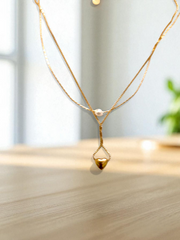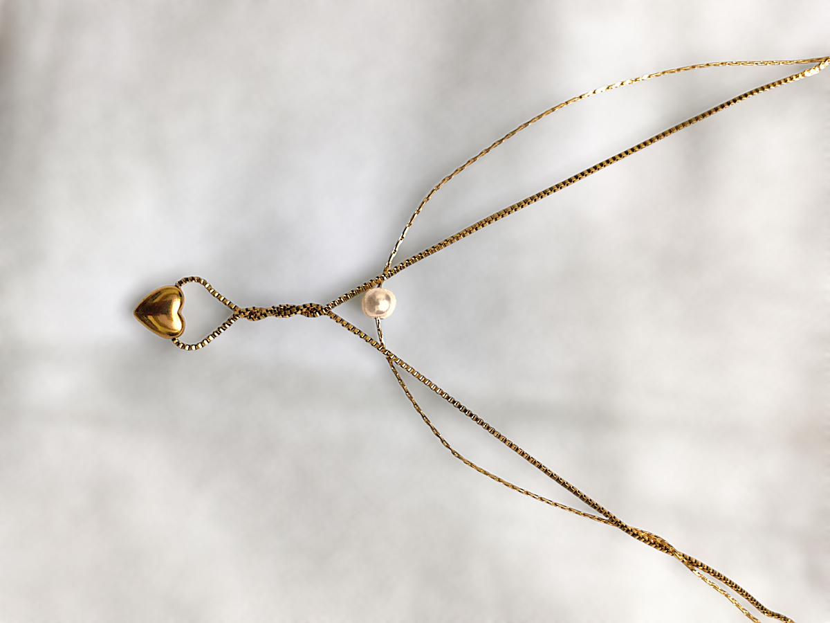 The Ashi Golden Heart Anti-Tarnish Chain is a sweet and simple chain with a shiny heart charm and a pretty pearl in the center. It has a golden finish and is made with anti-tarnish polish, so it stays beautiful and shiny for a long time.